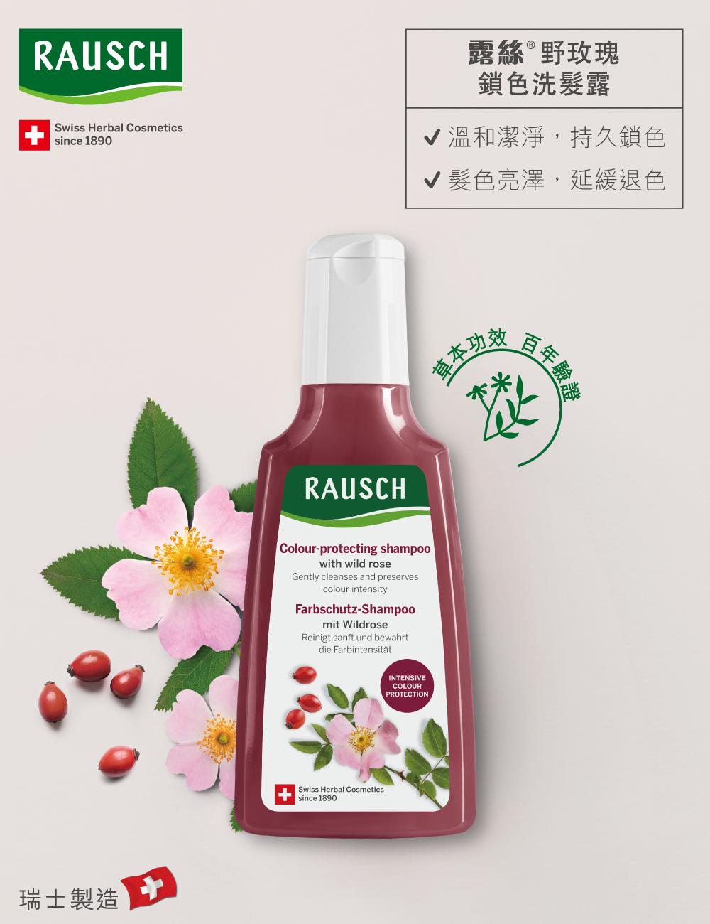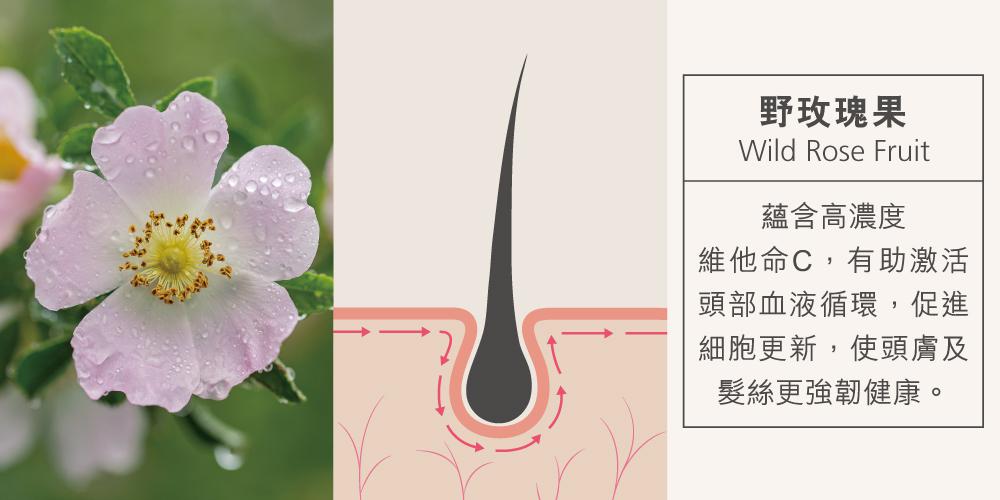 含野玫瑰果及木賊草本精華,保持染後髪色明亮光澤,延緩退色。